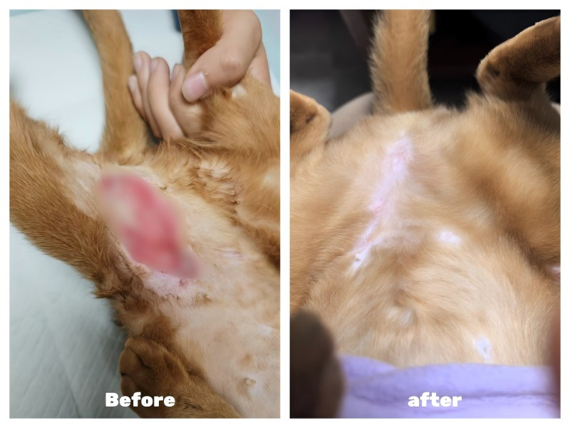 این مورد درمانی به طور موثر اثربخشی قابل توجهی را نشان می دهدلیزر دامپزشکی VETMEDIXدرمان توانبخشی در درمان پارگی غدد پستانی پس از هشت درمان توانبخشی با لیزر، زخم حیوان خانگی بیمار به طور قابل توجهی بهبود یافته است و روند بهبودی خوبی را نشان میدهد و بافت دانهبندی جدید به سرعت رشد کرده است. هیچ واکنش نامطلوبی در طول کل فرآیند درمان رخ نداد. این درمان به طور قابل توجهی زمان توانبخشی را کوتاه کرد و درد حیوان خانگی بیمار را کاهش داد.